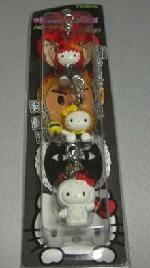 限定キティの根付「ハローキティ×特殊能力アビル」特殊能力アビルって知らなかったんですけど、ギャグ漫画なんですね。アビル、ポロキュー、冬野村の3個セット。 特殊能力アビル×ハローキティ★コラボファスナーマスコットセット