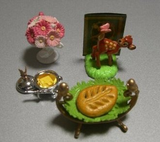 ぷちサンプル「夢と魔法のレストラン」ディズニーのキャラクターをモチーフにしたレストランです。全8種類。「バンビの森のリーフパン」でした。木の葉をイメージしたパン、おいしそう。こんな夢と魔法のレストラン、本当ににあればいいのにな。 リーメント/食玩・BOXフィギュアディズニーキャラクター 夢と魔法のレストラン 【3.バンビの森...価格:499円(税込、送料別) リーメント/食玩・BOXフィギュア【楽天ランキング入賞】【全部揃ってます!!】ディズニーキャラ...価格:3,192円(税込、送料別)