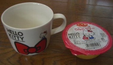 ローソン限定商品の「ハローキティのりんごゼリー」購入しました。マグカップ付きです。ハローキティキャンペーンの期間限定商品。キティちゃんの身長はりんご5個分、体重はりんご3個分なので、りんご味にしたのかな。 デカマグ 【マグカップ】 レッド ドットカラー ハローキティ 《Hello Kitty》血液型ワンコインマグカップ☆食器通販☆◆