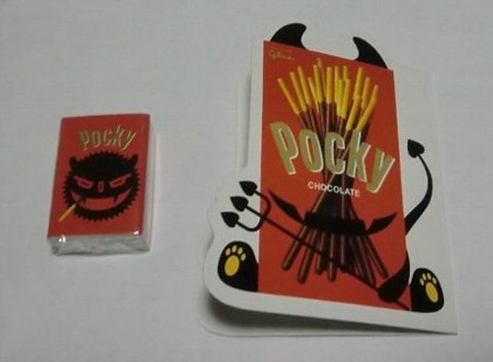 11月11日ポッキー&プリッツの日、サークルKサンクスは「帳消しポッキー消しゴム」全2種類。このカードに失敗やストレスを書いて、この消しゴムで消したら何もなかったこと、帳消しになるそうです。ホントかな~。