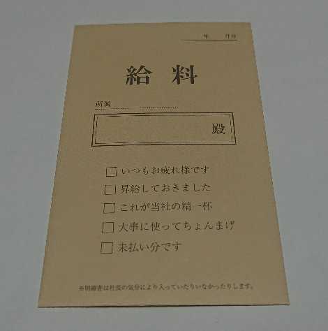 100均で見つけた面白いぽち袋。「ぷち袋 パロディ給料」ダイソー。10枚入り。 【面白グッズ】シール付きプチ袋 給料2(水色)NO.72018701 封かんシール付き 5枚セット★どっきりびっくり面白ぽち袋おとし玉袋お小遣い/お札を折って入れるタイプおとしだま袋パロディグッズ給料袋デザイン★【3cmメール便OK】価格:220円(税込、送料別) (2021/6/22時点)