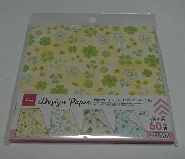 4月28日は四つ葉の日。語呂合わせだね。100均でみつけた「両面デザインペーパー クローバー柄」ダイソー。4柄×15枚で60枚入り。