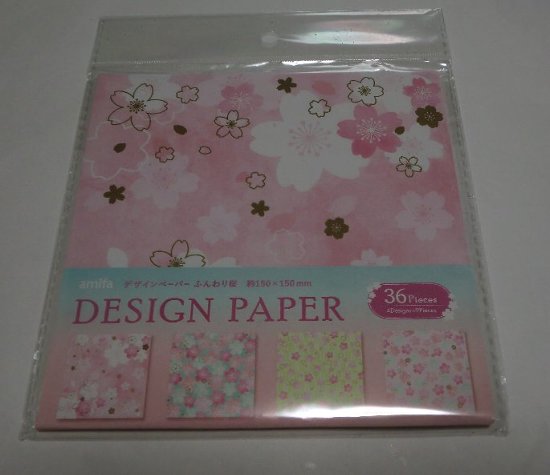 100均でみつけた「デザインペーパー ふんわり桜」4柄×9枚で36枚入り。セリア。