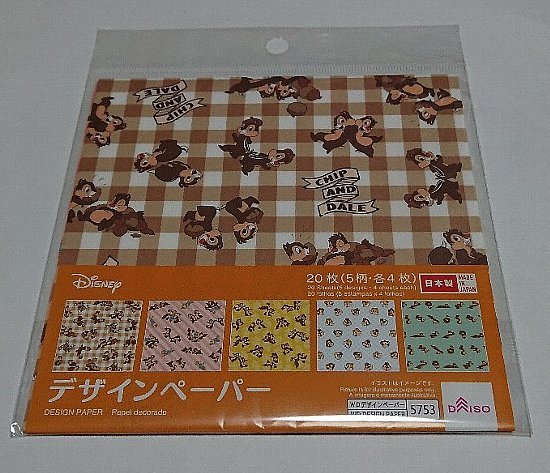 100均でみつけた「デザインペーパー チップ&デール」ダイソー。5柄×4枚で20枚入り。