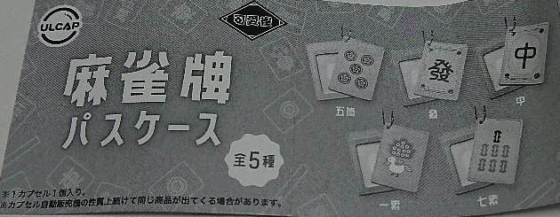 4月26日はオンライン麻雀の日。4人(4)でつる(26)むの語呂合わせから。「麻雀牌パスケース」のガチャガチャをしました。全5種類。「中」でした。