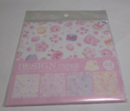100均でみつけた「デザインペーパー 桜巡り スイーツ柄」セリア。4柄×12枚で48枚入り。