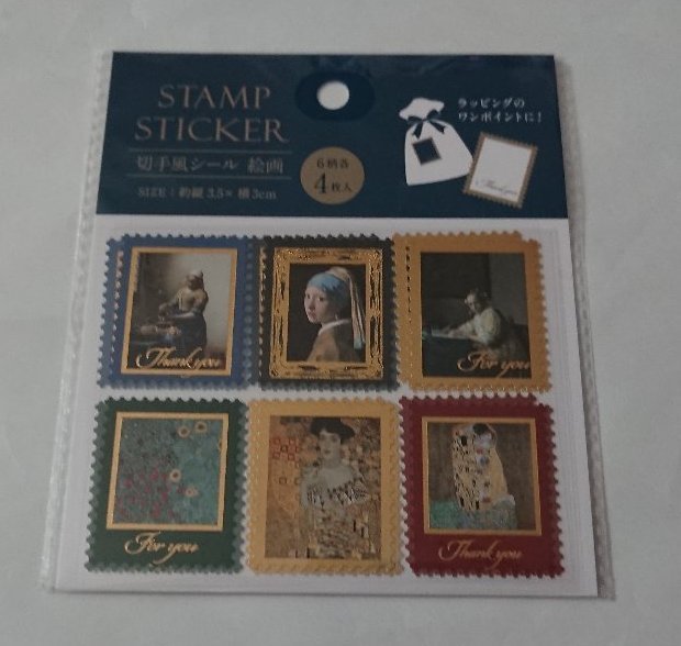 4月9日は美術展の日。1667年パリで世界初の美術展が開催。100均でみつけた「切手風シール 絵画」セリア。6柄の4シート。