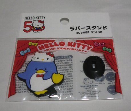 4月25日は世界ペンギンの日。アデリーペンギンがアメリカの南極基地に毎年4月25日前後に現れることから。100均でみつけた「ラバースタンド ハローキティ50周年 タキシードサム」キャンドゥ。