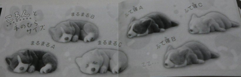 4月29日は家族と暮らす動物の幸せを考える日。よい肉球と読む語呂合わせから。「もふもふコーギー」のガチャガチャをしました。全6種類。白い犬が欲しくて出るまでやったら4種類ゲット。「ふて寝A」「ふて寝B」「まるまるB」「まるまるC」でした。