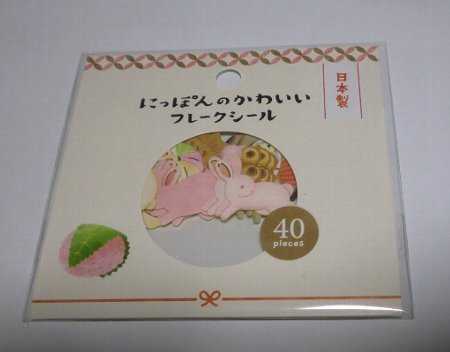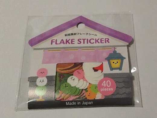 100均でみつけた「にっぽんのかわいいフレークシール 和菓子」キャンドゥ。10柄×4枚。