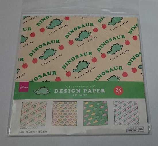 100均でみつけた「デザインペーパー Dinosaur」ダイソー。4柄×6枚で24枚入り。 。