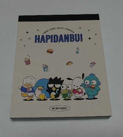 100均でみつけた「ミニメモ はぴだんぶい フーディ」キャンドゥ。おいしいスナックを楽しむ、はぴだんぶいのミニメモ。