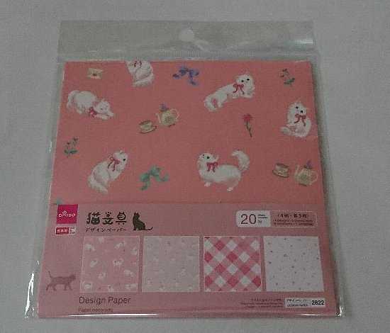 100均でみつけた「デザインペーパー 猫の日文具 ピンク」ダイソー。4柄×5枚で20枚入り。