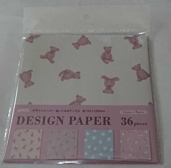 100均でみつけた「デザインペーパー ぬいぐるみアニマル」キャンドゥ。4柄×9枚で36枚入り。