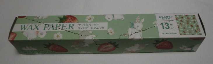100均でみつけた「ワックスペーパーM ヴィンテージアニマル」セリア。250×218mm。13枚。うさぎといちごだね。