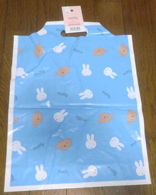 100均でみつけた「ミッフィーPEハンドルバッグ」41×30㎝(マチ9㎝)2枚。「ミッフィーPEハンドルバッグ」31×20㎝(マチ8㎝)3枚。セリア。