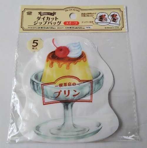 100均でみつけた「喫茶店シリーズ ダイカットジップバッグ スイーツ 喫茶店のプリン」5枚入り。キャンドゥ。