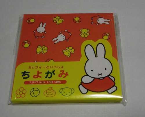 100均でみつけた「ミッフィーといっしょ ちよがみ」エビスマーケット。4柄×15枚で70枚入り。7.5㎝×7.5㎝。