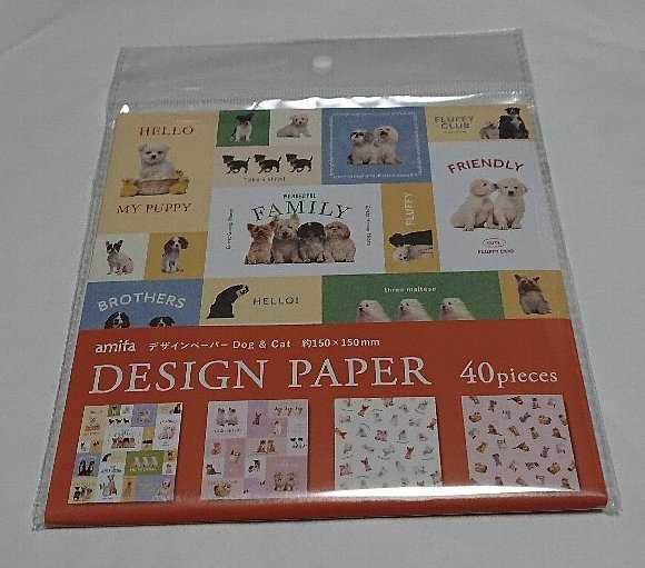 毎月12日はわんにゃんの日。鳴き声である「わん(1)」と「にゃん(2)」から。100均でみつけた「デザインペーパー Dog&Cat」セリア。4柄×10枚で40枚入り。