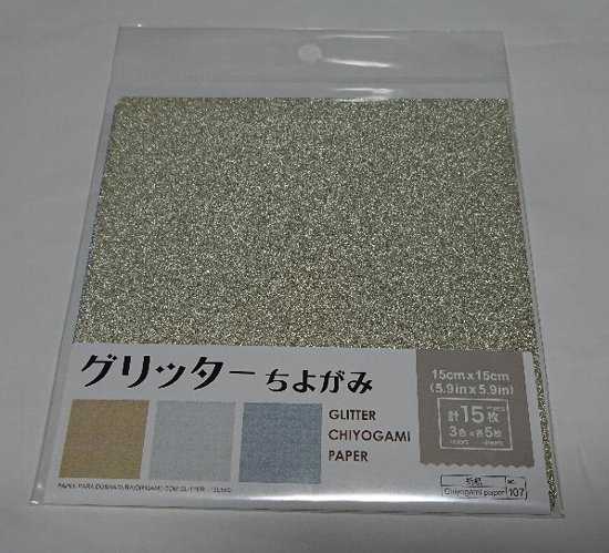 100均でみつけた「グリッターちよがみ」ダイソー。3柄×5枚で15枚入り。