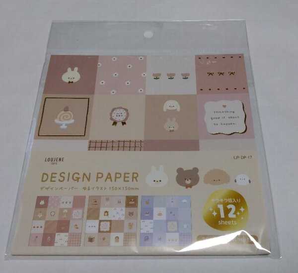 100均でみつけた「デザインペーパー ゆるイラスト」セリア。3柄×4枚で12枚入り。キラキラ箔入り。