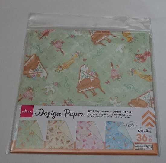 6月24日はドレミの日。1024年、イタリアの僧侶グイード・ダレッツォがドレミの音階を定めたことから。100均でみつけた「両面デザインペーパー 音楽柄」ダイソー。4柄×9枚で36枚入り。