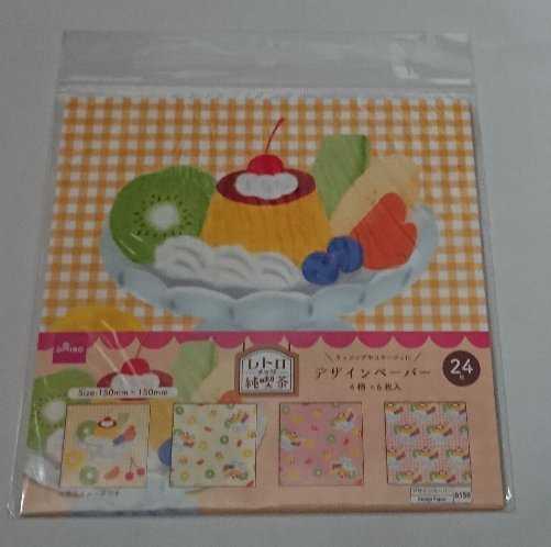 毎月25日はプリンの日。プリンを食べて笑顔になってほしい思いでニ(2)ッコ(5)リの語呂合わせから。100均でみつけた「デザインペーパー レトロチック純喫茶 レトロプリン」ダイソー。4柄×6枚で24枚入り。