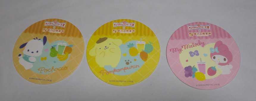 3個購入で「 ポチャッコ 」「 ポムポムプリン 」「 マイメロディ 」でした。