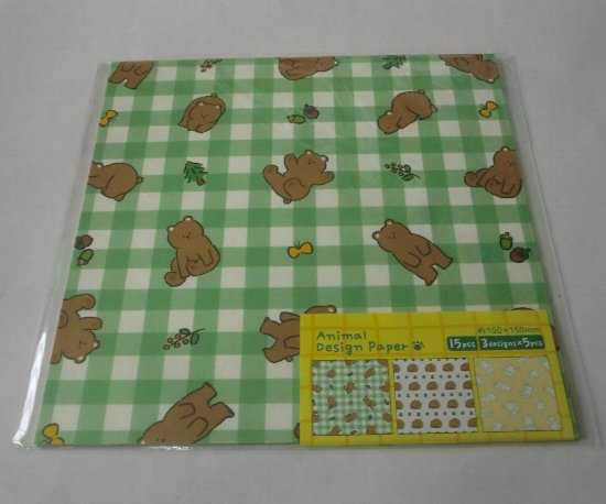 100均でみつけた「デザインペーパー ゆるゆるアニマル」セリア。3柄×5枚で15枚入り。くま。