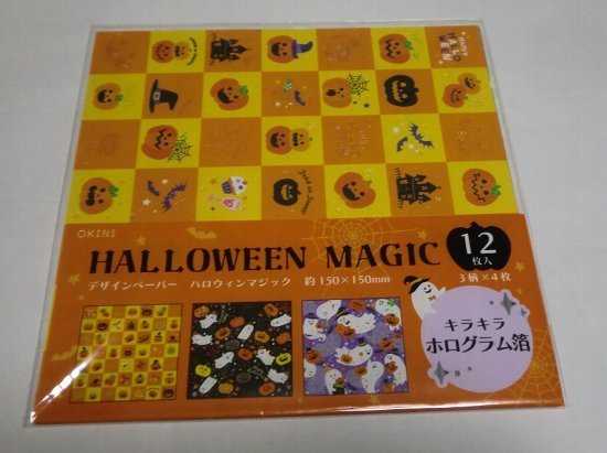 100均でみつけた「デザインペーパー ハロウィンマジック」キャンドゥ。3柄×4枚で12枚入り。キラキラホログラム箔。