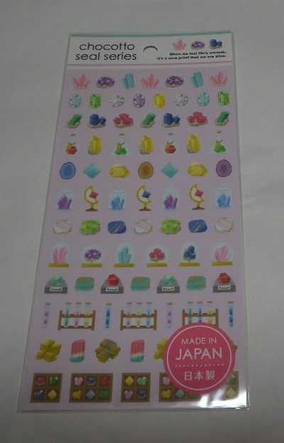 11月11日はジュエリーデーでした。1909年、宝石の重量の表示に200mgを1ct(カラット)とする国際単位が採用されたことから。100均でみつけた「chocottoシール 鉱石」キャンドゥ。