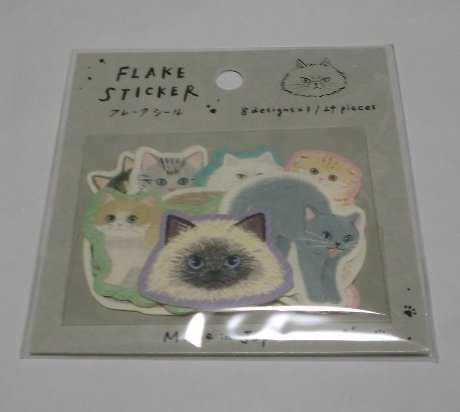 100均でみつけた「上質フレークシール 大きな猫」セリア。8柄×3枚。