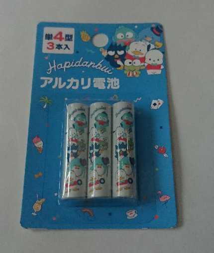 11月11日は電池の日。乾電池の+(プラス)-(マイナス)が十一になることから。「はぴだんぶいアルカリ乾電池」ダイソー。単4型3本入り。