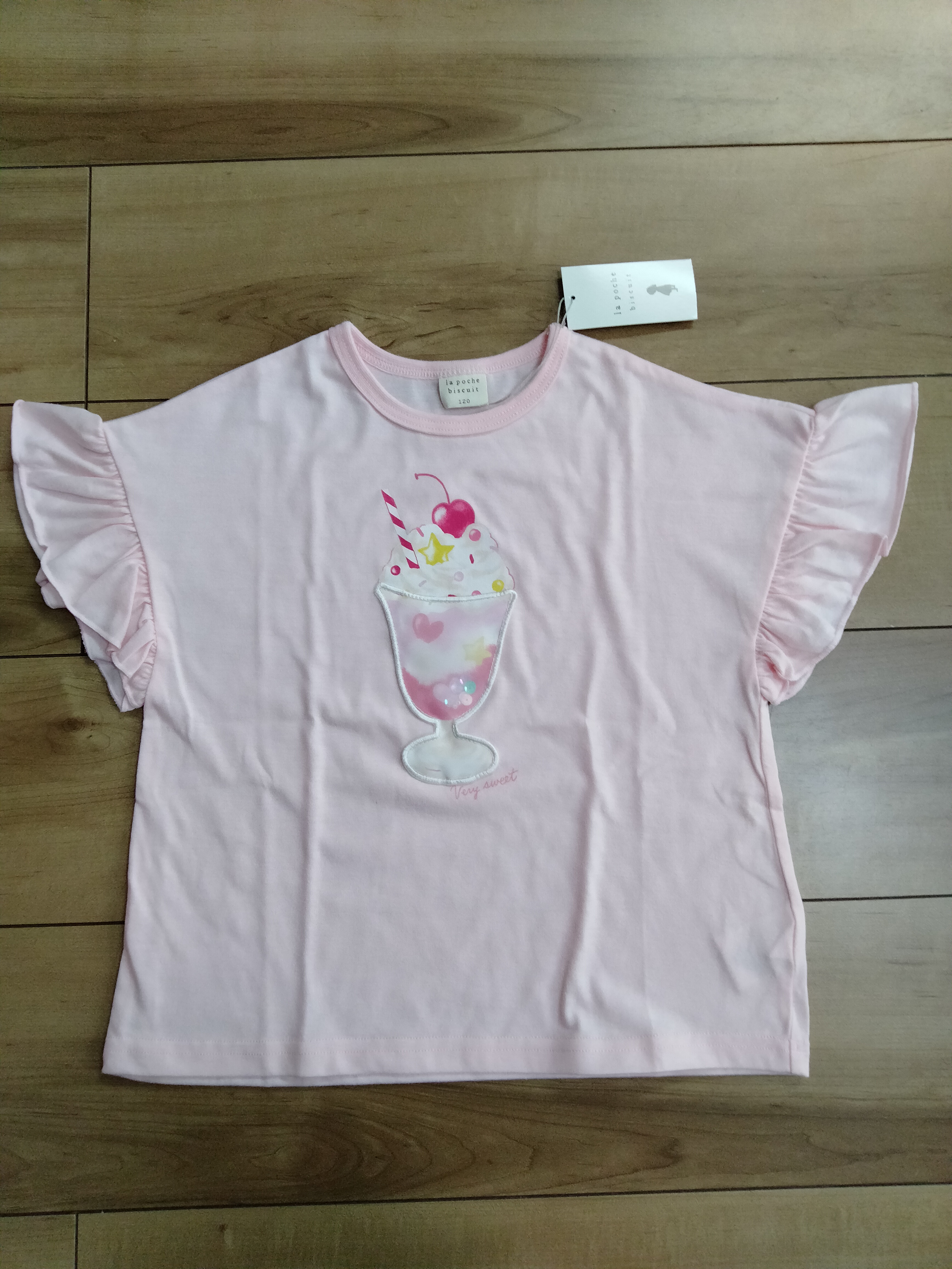 【2025春夏】la poche biscuit(ラポッシェビスキュイ)パフェ柄フリル半袖Tシャツ(80~140cm)