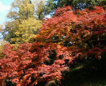 うちから歩いて40分くらいのところにアサヒビール大山崎山荘美術館があります。そこの庭園は紅葉がきれいで、私にとっては隠れた名所なのです。去年はじめて行って、とってもきれいだったので、今日の朝、雨も降ってないから「散歩がてら行く?」って話になり行って来ました。紅葉はこんな感じ。 美術館には入らず、お庭だけ・・・。お庭は入場無料なので、午前中にいかないと見学に来る人が多くなって写真撮るにも一苦労。今日は早めに行ったので、写真も楽々撮れました。(*´▽`*)