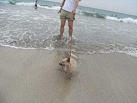 土曜の早朝から、一泊で伊豆の入田浜へ行って来ました。ここの海岸は、白浜からで10分ほどの小さな浜ですが静かでとってもきれいな海岸です。土曜日は、曇りでしたが時々薄日がさして ちょうどいいお天気でした。とにかくモモの反応が楽しみだったのですが、サラサラの砂の上が気持ちいいのか、面白がって飛び跳ねてました。 波打ち際まで歩いて、お腹が浸かるくらいの深さまで行きましたがそこからは、固まって動かなくなっちゃいました。やっぱり波が怖いんですね~岩場のほうへ向かう途中、に遭遇 ・ ・ 鼻先でツンツンしてました(挟まれなくてよかったね) 動画はこちらへ その後は、ボールやフリスビーで楽しく遊び、結構疲れたようで、宿へ向かう車の中では爆睡チェックインまで時間があったので、近くのドッグランへ寄りました。 アジリティ設備もあり、2階はドッグカフェ有り 先に遊んでいた「ハナ」ちゃんと一緒にチューブをくぐったりして遊びました。オーナーが、しつけ教室もやっているので走り回った後、カフェで、色んなお話をしてくれました。 ワンコとお泊り初体験は、伊豆高原のアニマーレプレミアムというペンションでした。 各部屋に露天風呂があり、ワンコと一緒に入れるようにワンコ用の浴槽も用意されていました。年数が経っているのか、とても綺麗!とまでは行きませんがお風呂まで、モモと一緒にいられるというだけで私的には、大満足でした 以外にも、モモは家のお風呂ほど嫌がらずにおとなしくしてました。食事をする時も、ワンコ同伴OKで モモは私の椅子の横でなんとか大人しく座っていられました。お食事も、美味しくて大満足でした。なにもかもが初体験でしたが、ホントに楽しくて 案外お利口さんだったモモにとても楽しい旅でした明日から、夏休み第1弾が3日間あるので モモとゆっくりしようと思います。
