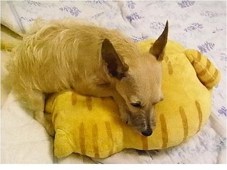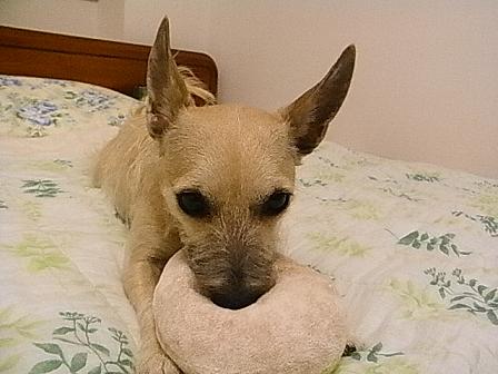 今日、フィラリアの薬を獣医さんのところにもらいにいったのですが血液検査をしてからでないと出せないとの事でした。去年は、モモがうちに来て初めてで すぐに出してもらえたのですが、2年目からは要検査なのですね。 土曜日にでもモモを連れてもう一度行ってきます。みなさん、4月頃からもう飲ませていますか長いGWが始まりますね~特に遠くにお出かけの予定はないので、モモを連れてドッグランや近場のドライブでも行こうと思ってます 最近の、けだもんちゃん達 メルモとモモ またくっついて寝てます 寝ているお兄ちゃんのお尻の上で熟睡中 ・ ・ 杖の形のクッションを、カジカジしてうっとり~ 久々のプーチン登場です。毎日食欲旺盛で とっても元気です それでは、皆さん 楽しい連休をお過ごしくださいね~
