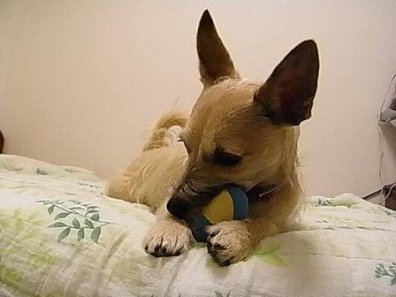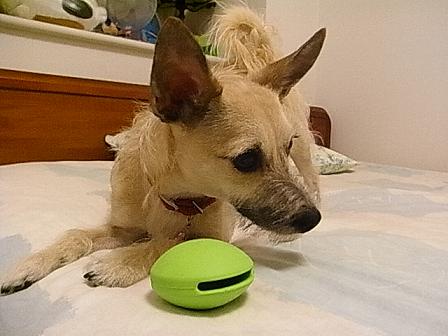 1年位前にモモに買って、あまり興味を示さず放置されていた知育おもちゃを久しぶりに出してみました。 中におやつを入れるタイプなのですが、まあ~おやつを出そうと飽きもせずにず~っと転がしたり、ベッドから落としたりとお留守番には、ちょうどいいアイテムになりました5、6個入れて、帰って来てから中を見ると 1、2個位しか残っていないのでなんとか食べられてるようですねお散歩の時間が少ないと、家の中でメルモを追いかけ回して大運動会するので、(フローリングがもう傷だらけです・ ・涙っ)昨日は5時くらいからお兄ちゃんと一緒に、2時間くらい歩いたので、さすがに疲れたようでした。 私は足ブルブル、頭クラクラしてました5時だというのに、まるで昼間のような暑さでしたよ ママ、お散歩は 毎日これくらいがいいですね~ 「ひーっ」