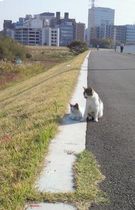 今日も絶好のお散歩日和でした。 いつもの河川敷でお散歩中、にゃんこの親子に遭遇とっても人懐っこくて、さすが野良ちゃん犬にもまったく動じません 子猫の方は、モモにだんだん近づいてきて じゃれて飛び掛ってくるのでモモはちょっとビビリ気味 親子に迫られて、手も足も出ません。。 お外のネコさんは強いですね~ 先週、久しぶりにモモの体重を量ったら4.6kgだったのが4.9kgに・ ・ 最近、お散歩の犬友さんに「モモちゃん、おっきくなった」と言われて嫌な予感がしていました。しばらくフードの計量カップのメモリ、ちょっとおマケしてたし・ ・ 去年、獣医さんに「4kg位が理想的」と言われながらも1年で1キロ近く太らせちゃいましたが、たぶん4kgって無理・ ・「野犬かっ」って思うくらいにみすぼらしく痩せちゃうと思うし今くらいマルっとしてる方が、可愛いのにな~って言い訳している私です