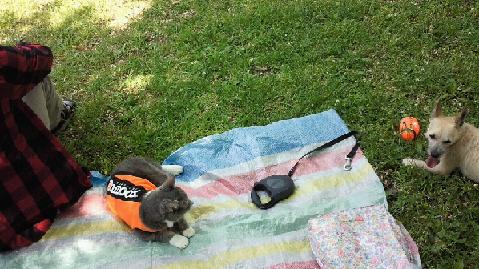 ずいぶんとおサボリしてしまいました最近ほんとに気持ちの良いお天気が続いて、毎日、モモとのお散歩が楽しいですずっと庭の手入れもサボっていたおかげで、また、西洋芝が大好物のケムンパス大発生していてせっかくの新芽が3割ほど餌食になっていました。駆虫作業の後、ニームオイル(人畜無害で効果抜群です)を撒いてまた来週あたり、芝種をまこうと思います。今の時期、鈴虫もたくさんいるのですが、メルモが捕まえてバリバリ食べてしまうので、かわいそうな鈴虫君の残骸もチラホラ・ ・(鈴虫をくわえているメルモの顔は、ホラーです)毎日こうして日常の事をして、わんにゃん達とまったり過ごせるのってほんとうに幸せです いつも人のいるところに集まるわんにゃん達です