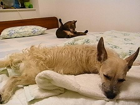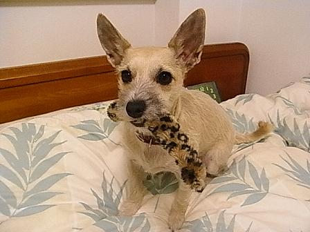 ずいぶん久しぶりの更新ですうちのけだもんちゃん達は、みんな元気にしていますそういえば、去年の今頃はプーチンの具合が悪くなってきて暮れから、1日2回の点滴に通い続けて 元日から獣医さんが病院を開けてくれていたんだっけ・ ・あれからもう1年経つんですね。プーチンも、すっかり元気になりました。只今16才です。腎臓が悪いので、毎日大量のお水を飲み 大量のオシッコをしますがこれと言って特に具合の悪い様子もなく、食欲も旺盛です。春に、ニャンコ達の予防接種と血液検査があるのですがプーチンは、高齢なので数値が改善している事はないと思いますができるだけ長生きしてくれれば・ ・ と願っていますメルモは、やたら甘えん坊になって ベッドに入ると顔をずーっとスリスリしてます。 さて、最近のモモですが、 相変わらず、家中で私のストーカーをしています (これ、背中がぴったり私にくっついてます。。 ) そして最近のモモの餌食は、カエルのぬいぐるみです。 動画見てください 注:早送りはしていませんめちゃくちゃ振り回してます この頃、土日以外はお散歩が短いので欲求不満かな