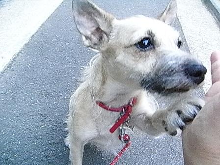 いよいよ梅雨に入ってしまいましたね 悩みの種のトイレも、定位置に一応シートを置いてモモのオシッコのニオイをつけ、「ワンツーワンツー!」とかけ声をかけてもまったくする気配なし・ ・(涙)先日、知人に「トイレを我慢するワンコは、腎臓にかなり負担がかかる」と聞いたんですが、モモってお留守番の時 長時間トイレ我慢してるのでとっても心配になっています。小さい時のように、「家中がトイレ、時々シート」の状態も困りますがあまりにも我慢するようになってしまったのも問題ですよね特にうちは、お留守番の時間が長いので 一筋縄ではいかないけど本格的にトイレトレーニング取り組まないとダメかな・ ・ 先週から練習しているハイタッチですが、なんとかマスターしたようです 今度は、シートでトイレできるように頑張ろうね。 今日も、冷蔵庫から納豆を出すと こんな格好でおねだりです。 やっとお休みだね~、ほんとに毎日いい子でお留守番してくれて ありがとう