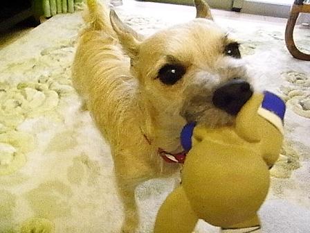 まだまだ残暑がきびしいですねみんなのお腹も、ようやく治ってほんとによかったです。今日は、お休みだったので 、いつも モモにお留守番のときに5.6個おやつを入れて置いて行く知育おもちゃ(仕事から帰ると、中身はカラッポになってます)いったいどうやって出してるのか、じっくり観察してみました。 動画です。 (音、出ます)けっこう、夢中になって 小さい頭を使いながら 投げたり、転がしたりして工夫してるんだ~メルモは、とばっちり受けて迷惑そうでした おやつ食べるのって、疲れますね~ ※この縄、「いぬのきもち」のふろくのおもちゃです。