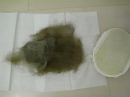 2週間に1度ほど、グローブタイプのブラシでけだもんちゃん達のブラッシングをするのですが現在、一番抜けるのが猫のメルモです。 1回のブラッシングでこれだけ取れます(やればやる程抜けるのできりがないです)このブラシ、毛がシート状にきれいに剥がれて、毛も舞い上がらないので重宝してます。 裏は、マッサージ用になってます。プーチンは、年のせいなのか最近は、あまり抜けなくなりました。でも、ブラッシング大好きでモモやメルモが先にやっているとニャーニャー泣きながら、催促して側に寄って来ます。 気持ち良かったニャーモモは、毛があまり抜けなくて抜けても数本程度。モモもブラッシング中は、気持ちいいのかゴロンと横になって大人しくしてます。 みんな、スッキリしちゃって気のせいかひと回り小さくなったかな