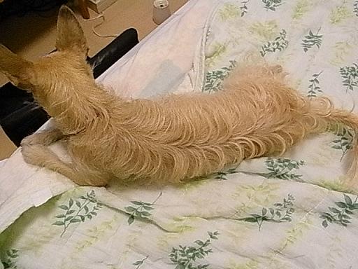 モモは、まだ一度も体毛のカットをした事がないのですが 最近のモモの背毛は、クリンクリンになっていて シャンプー後にブラシで揃えても、乾くと ・ ・ こんな風になってます。これはやっぱりシュナの毛質でしょうか そろそろ、爪も伸びてきてるので明日あたり プチ美容パックに 行ってこようと思います さっきまで、しつこくメルモに絡んでましたが モモには登れない メルモの避難場所に逃げられ、がっかり顔 残念でした~