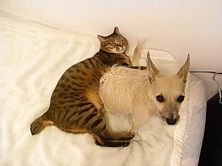先日は、優しいコメントを頂いてほんとうにありがとうございました。最近は、気持ちも落ち着いて 不思議と楽しかった事ばかりが思い出されます。2度と会えなくなってしまうと、無性にもう一度会って話してみたくなったり ・ ・数年間、あまり思い出さなかったのに、今後、一生忘れられない存在になってしまいました。「どうかこれからは そちらからみんなを見守っていてくださいね。」 我が家のけだもんちゃんたちは、とっても元気です 相変わらず元気いっぱいのモモとメルモです プーチンも、高いところへジャンプできるようになって、とっても元気です さあ、お休みも今日で終わり 明日からそれぞれ、お仕事にお留守番 また頑張ろうネ。