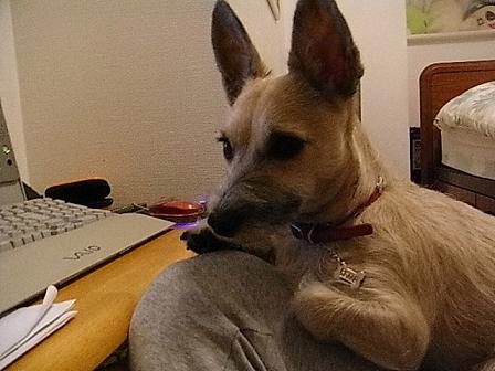 私がパソコンの前に座ると、モモは必ず膝に乗ってきます ねぇ、重いんですけどぉ~ そのうちウトウトしてきて・・(時々、コックリしだして机にゴツンしちゃったり) うわぁ、こりゃ怪獣だ・・ 最近、歯磨きを始めました。(先日おもちゃを噛んでいる時に、奥歯が少し茶色くなっているのを発見したので・ ・) 意外と嫌がらずに、器用に上下の歯にブラシをあててカジカジしてます。 歯茎が気持ちいいのかもしれませんネ。 頑張って、続けようね