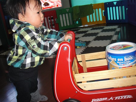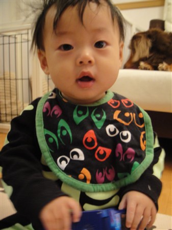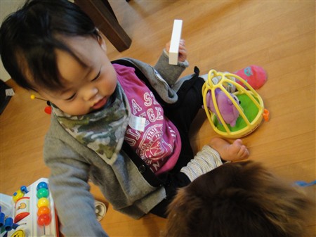 先日、チェルちゃんの兄弟がやってきました積み木ですが…(笑)『オレと一緒やんか。。。』『なんやコイツ動くやん』この新しい積み木のチェルちゃん人形たいちゃんめっちゃお気に入りになりました今日はパジャマで失礼します(笑) 『おッ新しいおもちゃやん』『コレあいつとおんなじやんこれやったら思いっきり引っ張れるわ』もともと紐が大好きだったたいちゃんチェルちゃん人形のしっぽと口から出てる紐がかなりお気に入りブンブン振り回したり、ボディを持って押したり引いたり、ナイスやねまたまた当たりのおもちゃ『散歩行くで~~~』紐持ってず~~とウロウロしてましたもちろんハイハイで(笑)他の紐付き積み木も買ってあげようかなぁ。。そんなご機嫌だったたいちゃんですが、今日のご機嫌は朝9時まで最近の上機嫌プリはどこへやら、今日は一日ぐずりっぱなしでしたま、そんな日もあるわな最近が機嫌よすぎたんかもでもでも今日の夜は同じマンションのKZファミリーと食事会い~~っぱい写真撮りたかったのに食事中ぐずり続けたたいちゃんを2時間ひたすら抱いていたので写真ゼロ旦那っちは相手の旦那さんとお話に夢中でカメラのことさえ忘れてるしま、は次回ということで・・・でも楽しかったなぁたらふく食べたし次のお食事会はもう忘年会ですね11月ももう半ば…あっという間にお正月がきそうやぁ
