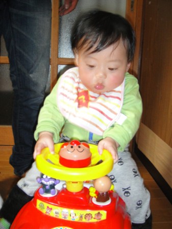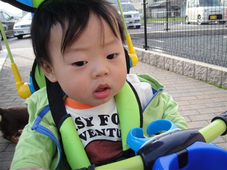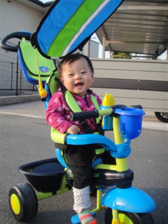 旦那っちが忙しく、届いてから今までまた玄関に放置されていた三輪車が今日ついに完成お披露目~イエ~~『これボクめっちゃ気に入ったわ』ヤバい三輪車もたいちゃんもカワイイ~~『ママちょっとはよ押してよ』たいちゃんも終始ご機嫌ウキャッキャッとたくさんお話ししてくれました組み立ても旦那っち一人で30分もあれば余裕でできました『とりあえずやっとくかぁ。。。』パクッ『まずは味見やろ』たいちゃん付属の携帯を早速味見中(笑)携帯もカワイイですよあたしホント早く三輪車を押したかったんですよねたいちゃんは三輪車がよっぽど嬉しかったのか、乗った後は、夕方のグズリもなく外食中もず~~っとご機嫌お気に入りのキリンのマラカスでシャンカシャンカ居酒屋中に響く音でシャンカシャンカ(笑)『明日も三輪車乗せてや』せやね明日から三輪車のお散歩が増えるかもしれません今まで、ベビーベッド、ハイローチェア、バウンサー、バンボ・・・買ってもぜーんぶイヤだと言うて乗ってくれないものばかりやったのにこの三輪車は初めて笑顔で乗ってくれましたこれだけ喜んでくれると買った甲斐があるってもんやねありがとうばぁば