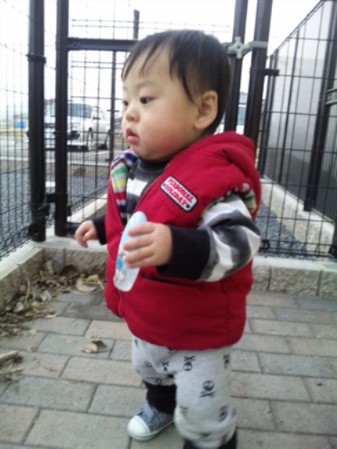 地球が怖かったたいちゃんですが、土曜日に遂に地球克服『地球なんかへっちゃらや』金曜日にまるさんがズンドコトコドコ歩くのを見て影響されたんか、外でも歩けるようになりましたまだまだ危なっかしいけどたいちゃんにも、少し好奇心が芽生えたんかなぁ『ソフトクリーム食べる』シャボン玉持って嬉しそうにヨチヨチ歩きだした時もそうやったけど、この日も、急に下に降りたいと暴れ出し、下ろしてみたところ、ペタペタ歩きだす…たいちゃんには、ほんま驚かされます『着いてきいやぁ』かれこれ20分近くはマンションの下でウロウロしてたかもおかげでママとチェルちゃんは寒かったよ仕事から帰ってきた旦那っちに報告したら写真を見るなり一言『うんP持っとるみたい…』ちゃうわソフトクリーム型のシャボン玉やそれでも嬉しかったのか、たいちゃんの歩いてる姿を見たいらしく公園行き決定また一つ成長したたいちゃんすごいなぁ話はガラリと…ブルワンにランチに行きましたずっと気になってたものの、行ったのは初めてエントランス外観と同じくイイ感じ水も流れとるよ気になる店内もおしゃれでお座敷はないけれど、子供イス完備パンビーフシチュー見た目小さくて、『こんなんお腹一杯にならんわ』と、思ったけど案外満たされましたキッズプレートは、まだまだ食べれる内容ではなかったなぁ席からも緑がたくさん見えてキレイでしたガドガドのリーズナブル版て感じですねでもお股付きの子供イスがあるってのはポイント高い夜また旦那っちと来てみよう